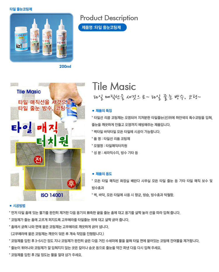 브랜드 - 모델명 타일매직터치원_200㎖